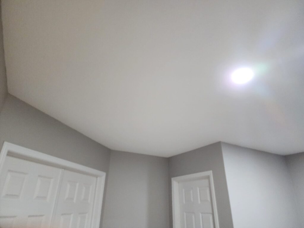 After smoothing, every ceiling gets two coats of premium flat ceiling paint for a bright, clean finish. We use specialized ceiling paint that minimizes drips during application and dries to a perfectly matte surface that hides minor imperfections. Freshly painted smooth ceilings make rooms feel taller and brighter.